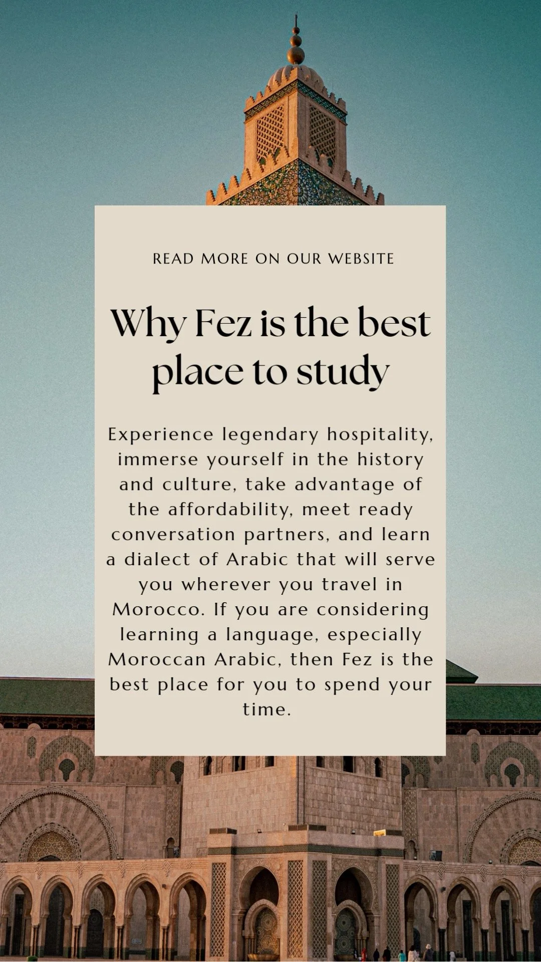 Moroccan Arabic is the local, colloquial dialect of Arabic used in Morocco. If you plan to live in Morocco, this is the language that will be most useful, along with French.
